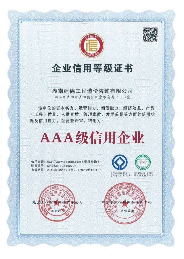 2015年12月17日 我公司榮獲AAA級信用企業(yè)!